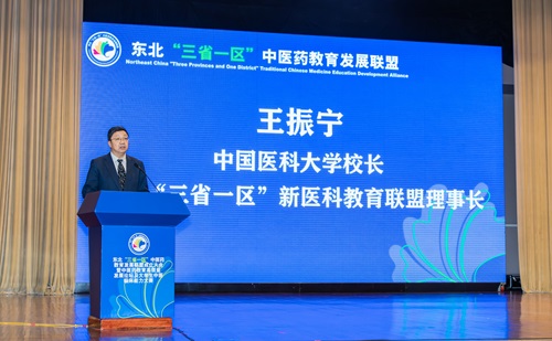 東北“三省一區(qū)”新醫(yī)科聯(lián)盟理事長、中國醫(yī)科大學(xué)校長王振寧致辭。他表示,新醫(yī)科教育聯(lián)盟的成立是貫徹落實(shí)習(xí)近平總書記對(duì)加強(qiáng)醫(yī)學(xué)教育工作、發(fā)展衛(wèi)生健康事業(yè)重要指示的關(guān)鍵舉措,是醫(yī)學(xué)教育領(lǐng)域內(nèi)具有里程碑意義的創(chuàng)新合作。東北“三省一區(qū)”中醫(yī)藥教育發(fā)展聯(lián)盟成立會(huì)議的召開,充分體現(xiàn)中醫(yī)藥教育教學(xué)堅(jiān)持開放共享、優(yōu)勢(shì)互補(bǔ)、協(xié)同創(chuàng)新、融合發(fā)展的原則。將充分利用自身優(yōu)勢(shì),發(fā)揮輻射引領(lǐng)作用。為民族復(fù)興,東北先行,中醫(yī)藥事業(yè)騰飛發(fā)展助力。