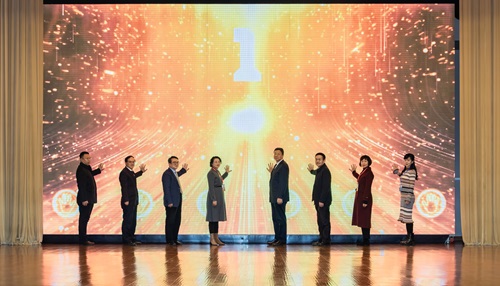 與會(huì)領(lǐng)導(dǎo)共同開啟聯(lián)盟啟動(dòng)儀式,并向參加大學(xué)生中醫(yī)臨床能力大賽的隊(duì)伍授旗。