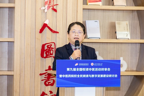 呂曉東在致辭中介紹了遼寧中醫(yī)藥大學(xué)建設(shè)發(fā)展的基本情況以及圖書(shū)館文化敘事空間改造工作方面取得的成效。她指出,全國(guó)悅讀中醫(yī)活動(dòng)不僅是文化傳承和知識(shí)傳播的過(guò)程,更是促進(jìn)中醫(yī)藥事業(yè)繁榮發(fā)展的重要舉措。數(shù)字賦能中醫(yī)藥文化建設(shè),對(duì)于普及中醫(yī)藥知識(shí)、推動(dòng)中醫(yī)藥教育與科研創(chuàng)新、提升中醫(yī)藥服務(wù)水平具有重要的意義。作為承辦方,學(xué)校高度重視會(huì)議的組織工作,切實(shí)加強(qiáng)服務(wù)保障,確保會(huì)議順利進(jìn)行。她深情期待會(huì)議的議題和終審的結(jié)果,期待閱讀數(shù)字領(lǐng)域的知名學(xué)者,共同探討如何更好地推進(jìn)中醫(yī)藥全民閱讀工作,激發(fā)全社會(huì)對(duì)中醫(yī)文化的熱愛(ài)和傳承。