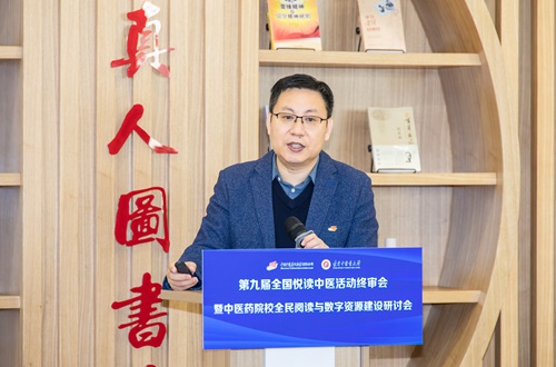 國(guó)家中醫(yī)藥管理局綜合司邢琳菡,廣西壯族自治區(qū)中醫(yī)藥管理局副局長(zhǎng)潘霜,遼寧省中醫(yī)藥管理局中醫(yī)藥健康處處長(zhǎng)劉嶸,浙江省中醫(yī)藥管理局中醫(yī)藥傳承創(chuàng)新處二級(jí)調(diào)研員陳良敏,河北中醫(yī)藥大學(xué)黨委書(shū)記姜建明,山西中醫(yī)藥大學(xué)黨委書(shū)記郝慧琴,遼寧中醫(yī)藥大學(xué)黨委書(shū)記呂曉東,江西中醫(yī)藥大學(xué)校長(zhǎng)朱衛(wèi)豐,遼寧中醫(yī)藥大學(xué)副校長(zhǎng)任路,河南中醫(yī)藥大學(xué)副校長(zhǎng)徐江雁,保山中醫(yī)藥高等專(zhuān)科學(xué)校副校長(zhǎng)楊崢,中國(guó)中醫(yī)藥報(bào)社有限公司副總經(jīng)理陸燁鑫,中國(guó)中醫(yī)藥出版社有限公司副總經(jīng)理張峘宇,韜奮基金會(huì)副秘書(shū)長(zhǎng)、韜奮基金會(huì)全民閱讀促進(jìn)會(huì)會(huì)長(zhǎng)劉國(guó)輝,中國(guó)新聞出版研究院出版研究所所長(zhǎng)、國(guó)民閱讀研究與促進(jìn)中心主任徐升國(guó),國(guó)醫(yī)大師韋貴康學(xué)術(shù)傳承人、《詩(shī)詞里的中醫(yī)藥》作者韋堅(jiān),中國(guó)中醫(yī)藥報(bào)社有限公司記者伍志成出席開(kāi)幕式。組織第九屆全國(guó)悅讀中醫(yī)活動(dòng)的21家中醫(yī)藥院校圖書(shū)館與全民閱讀數(shù)字化建設(shè)相關(guān)部門(mén)領(lǐng)導(dǎo)及專(zhuān)家、悅讀中醫(yī)書(shū)吧共建機(jī)構(gòu)和中醫(yī)藥數(shù)字產(chǎn)品代理機(jī)構(gòu)代表、中國(guó)中醫(yī)藥出版社及我校相關(guān)職能部門(mén)負(fù)責(zé)人共70余人參加開(kāi)幕式。