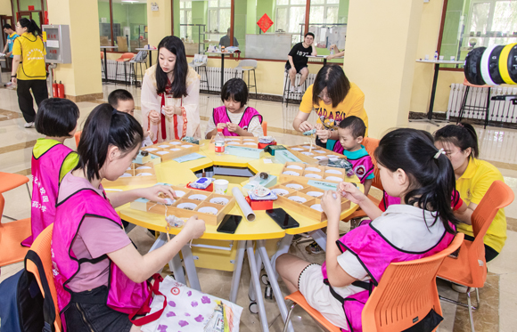 在中醫(yī)特色課程上,孩子們跟隨大學(xué)體育部的張婷老師一招一式、有模有樣地打著八段錦;與林大勇老師了解《黃帝內(nèi)經(jīng)》的四季養(yǎng)生、辨識(shí)五谷、手工制作山楂丸和黑芝麻餅,孩子們熱情高漲,很多人都得到了林老師親手繪制的獎(jiǎng)品。在大學(xué)生創(chuàng)新創(chuàng)業(yè)基地,朗朗上口的《大醫(yī)精誠(chéng)》在孩子們口中傳頌,“五色軒”琳瑯滿目的各類中醫(yī)藥文化產(chǎn)品令孩子們愛(ài)不釋手。在志愿者們的帶領(lǐng)下,孩子們制作了屬于自己獨(dú)一無(wú)二的防蚊香囊,學(xué)做捏面人、畫(huà)扇面,觀看舞獅、跳水袖舞,上了一場(chǎng)生動(dòng)的美育課,趣味十足。在《穴位按摩預(yù)防近視,呼吸調(diào)理助你長(zhǎng)高》的實(shí)踐課堂上,孩子們積極參與,學(xué)習(xí)“穴位急救常識(shí)”和預(yù)防近視的呼吸調(diào)理方法,進(jìn)行針刺腕力大比拼,再一次切實(shí)地感受到中醫(yī)外治法的特有魅力。三天活動(dòng),孩子們手中的夏令營(yíng)打卡點(diǎn)全部集齊,收獲滿滿。