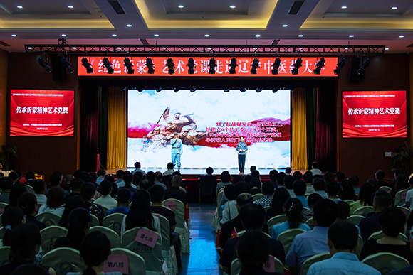 7月17日,學校邀請中共臨沂市委黨校魯南制藥分?!耙拭删瘛毙v團,在大學生活動中心舉辦《紅色沂蒙》藝術黨課宣講,學校黨委書記呂曉東、紀委書記張錦徽、副校長劉繼東、副校長戴旭出席。