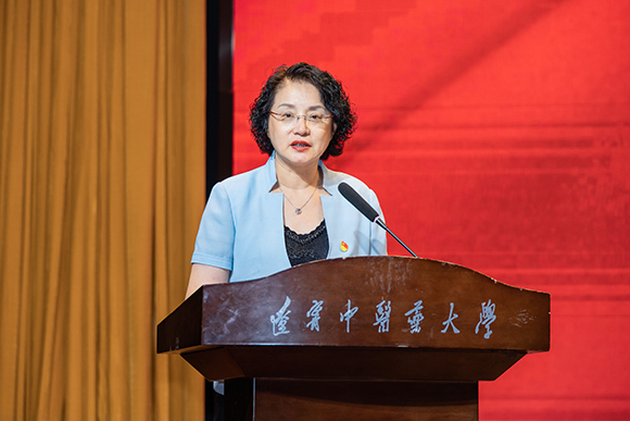 關于黨員領導干部弘揚沂蒙精神,她提出三點要求,一是要堅定理想信念,結合當前正在深入開展的學習貫徹習近平新時代中國特色社會主義思想主題教育,全校的黨員、干部要通過全面、系統(tǒng)、深入地學習習近平新時代中國特色社會主義思想,在學習中進一步筑牢信仰之基、補足精神之鈣、把穩(wěn)思想之舵。二是要發(fā)揚斗爭精神,從沂蒙精神中汲取斗爭力量和斗爭智慧,發(fā)揚斗爭精神、增強斗爭本領,勇于克服改革發(fā)展道路上的一切困難,朝著實現(xiàn)學校高質(zhì)量內(nèi)涵式發(fā)展、中醫(yī)藥振興發(fā)展、遼寧全面振興的目標奮勇前進。三是要站穩(wěn)人民立場,把以人民為中心的發(fā)展思想落實到學校具體工作中,不斷增強師生的獲得感、幸福感、歸屬感、安全感,激發(fā)起師生的主人翁精神,凝聚起攻堅克難、爭創(chuàng)一流的強大力量,把學校各項事業(yè)推向前進。
