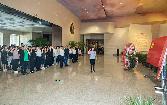 最后一項(xiàng)現(xiàn)場教學(xué)是前往坐落于英華山上的抗美援朝紀(jì)念館,也是本次培訓(xùn)的最后一項(xiàng)內(nèi)容。全體學(xué)員在序廳向抗美援朝烈士敬獻(xiàn)花籃,伴隨著深沉悠長的《獻(xiàn)花曲》,呂曉東上前整理花籃緞帶,全體黨員干部一起向抗美援朝烈士三鞠躬,寄托對革命烈士的深切哀思。隨后,由呂曉東領(lǐng)誓,全體黨員共同重溫入黨誓詞。儀式結(jié)束后,在講解員帶領(lǐng)下,全體學(xué)員神情莊重,緩緩步入展廳,大家認(rèn)真聆聽抗美援朝革命先烈們甘灑熱血譜春秋的英雄事跡,仔細(xì)參觀館內(nèi)陳列的影像資料、實(shí)物陳列和光電布景,實(shí)地了解抗美援朝戰(zhàn)爭和志愿軍戰(zhàn)士保家衛(wèi)國的光榮歷史,深刻感受抗美援朝志愿軍將士們舍生忘死、英勇無畏的革命精神。