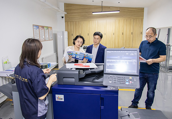 調(diào)研中,遼寧中大資產(chǎn)經(jīng)營管理有限責(zé)任公司總經(jīng)理王伽琪和印刷廠廠長裴志東從廠區(qū)建設(shè)、經(jīng)營范圍、人員配置等方面向一行人介紹了印刷廠的基本情況。一行人參觀了廠區(qū)的設(shè)備設(shè)施,觀看了現(xiàn)場印刷演示,了解了多樣化的印刷工藝。