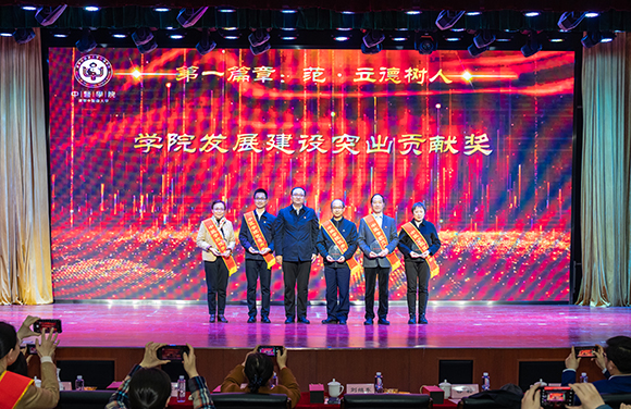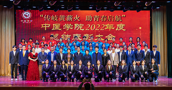 3月29日,中醫(yī)學院在大學生活動中心召開“傳岐黃薪火·助青春啟航”2022年度總結表彰大會。學校副校長劉繼東,組織部部長凌常清、教務處處長賈連群、科技處處長于睿、學生工作處處長李睿、招生就業(yè)處處長陳冰、團委書記徐鵬、體育部主任吳俊琦,學生處副處長劉英佶、何繼勇,招生就業(yè)處副處長曲寧寧、體育部副主任劉璐,學院領導班子成員、專家教授、各教研室和各科室主任、獲獎教師及學生出席,全院教師和學生代表參加大會。