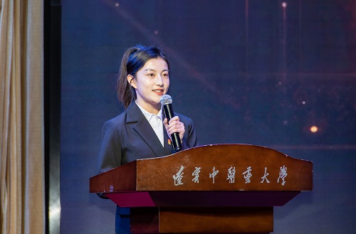 藥學(xué)院劉芳彤、中醫(yī)學(xué)院季天民、針灸推拿學(xué)院郭景薪分別代表各項獎學(xué)金獲獎學(xué)生發(fā)言,感謝學(xué)校領(lǐng)導(dǎo)老師們的悉心培養(yǎng)和同學(xué)們的幫助鼓勵,他們用自己的奮斗故事述說大學(xué)生活中的成長經(jīng)歷,他們用樸素的語言、樸實而不凡的事跡感染著在場的每一個人。