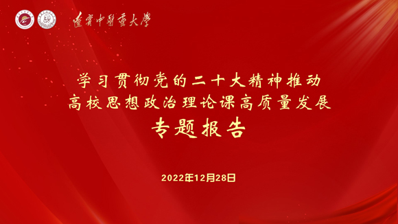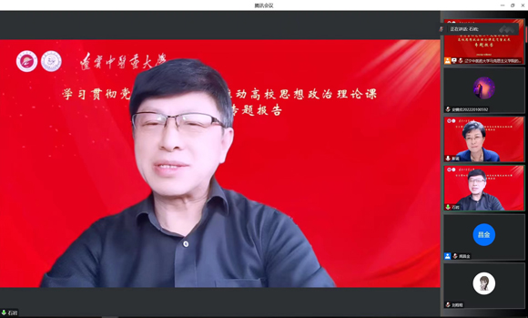 12月28日,學(xué)校舉辦了“學(xué)習(xí)貫徹黨的二十大精神推動(dòng)高校思想政治理論課高質(zhì)量發(fā)展”專(zhuān)題報(bào)告會(huì),會(huì)議邀請(qǐng)了中國(guó)人民大學(xué)馬克思主義學(xué)院靳諾教授作專(zhuān)題報(bào)告。本次研討會(huì)采取線(xiàn)上會(huì)議的形式,學(xué)校黨委書(shū)記石巖、副校長(zhǎng)劉繼東、全體思政課教師及部分碩士研究生共73人參加會(huì)議。石巖主持會(huì)議。