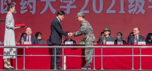 石巖為沈陽校區(qū)14名學(xué)生教官依次頒發(fā)優(yōu)秀教官榮譽(yù)證書。曾服役于中國人民解放軍第七十八集團(tuán)軍特種作戰(zhàn)第78旅的一營教官,中醫(yī)學(xué)院黃煜軒同學(xué)表示,回到學(xué)校,從一名戰(zhàn)士變成一名學(xué)生,但對祖國的熱愛沒有絲毫改變;優(yōu)秀學(xué)員代表蔣嘉雯認(rèn)為,教官是我們的榜樣,我要學(xué)習(xí)他們身上嚴(yán)肅認(rèn)真,堅(jiān)韌不拔的作風(fēng),并在今后的學(xué)習(xí)生活中繼續(xù)保持。