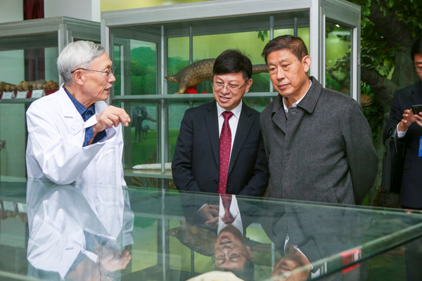 (老專家王榮祥向?qū)<医M介紹中藥標(biāo)本館)