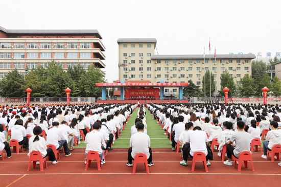 在雄壯的國歌聲中,鮮艷的五星紅旗冉冉升起,開學典禮拉開序幕。