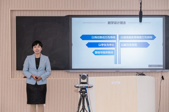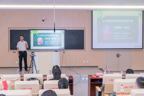 張海龍老師首先作了題為《面神經》的課程展示。他創(chuàng)新板書設計,講課語言流暢,生動有趣,邏輯思維嚴密。又以《如何進行教學設計和課程思政》為題,從課前的學情分析、教材分析、教學目標、教學重點與難點、教學方法與手段、課程思政設計、兩性一度設計、板書設計、教學流程,課中的課堂教學過程設計,課后的教學效果評價及教學反思等11個步驟進行了詳細闡述。