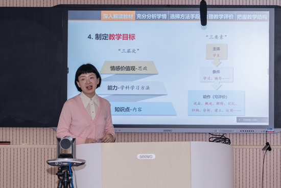 李響老師以《淺談如何進行教學設計和課程思政》為題,用親身的授課案例從深入解讀教材、充分分析學情、選擇教學方法與手段、合理開展教學評價和把握教學結構等五方面進行詳細闡述。