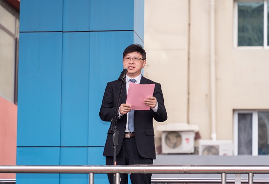 石巖作軍訓(xùn)動(dòng)員講話,講話中他代表學(xué)校黨委對(duì)幫助我校完成軍訓(xùn)工作的沈陽(yáng)市遼牙軍旅研學(xué)訓(xùn)練基地領(lǐng)導(dǎo)和各位教官們表示衷心的感謝!同時(shí)對(duì)本次軍訓(xùn)提出三點(diǎn)希望,一是要通過軍訓(xùn)將習(xí)近平總書記的深情囑托轉(zhuǎn)化為“強(qiáng)國(guó)有我”的磅礴力量;二是要從歷史中汲取和弘揚(yáng)愛國(guó)主義精神;三是以軍訓(xùn)為契機(jī)強(qiáng)化自身綜合素質(zhì)。