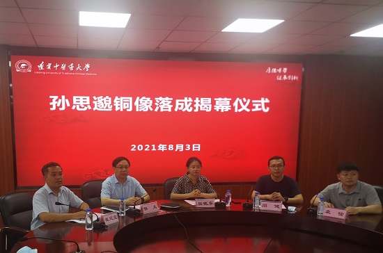 8月3日,孫思邈銅像捐贈(zèng)落成揭幕儀式在我校大連校區(qū)舉行,北京、沈陽(yáng)、大連三地通過(guò)視頻連線共同進(jìn)行。中華人民共和國(guó)國(guó)史研究員、陜西孫思邈研究會(huì)名譽(yù)會(huì)長(zhǎng)孫永旭先生,孫思邈后裔聯(lián)絡(luò)會(huì)秘書(shū)長(zhǎng)孫滬生先生,孫思邈后裔大連地區(qū)代表,學(xué)校校長(zhǎng)呂曉東,學(xué)校相關(guān)部處負(fù)責(zé)人,大連校區(qū)副處級(jí)以上干部及部分在校學(xué)生代表參加了揭幕儀式。揭幕儀式由藥學(xué)院黨總支書(shū)記才謙主持。