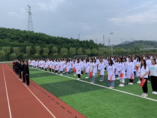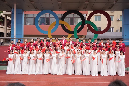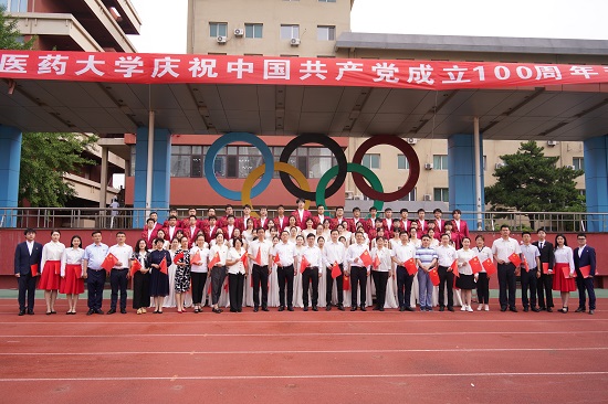 石巖宣布升旗儀式正式開始,國旗護(hù)衛(wèi)隊(duì)邁著整齊劃一的步伐,莊嚴(yán)地護(hù)送鮮艷的五星紅旗緩緩走向會(huì)場。國歌奏響,五星紅旗伴隨著振奮人心的歌聲冉冉升起,點(diǎn)燃了在場師生滿腔熾熱的愛國之情。隨后,在《國粹鑄成的光榮》校歌聲中,校旗緩緩上升。學(xué)生代表、校學(xué)生會(huì)主席祝恒基發(fā)言。他號召廣大同學(xué)擔(dān)負(fù)起時(shí)代新人的責(zé)任與使命,加強(qiáng)基礎(chǔ)知識的學(xué)習(xí),提高科研能力,勇攀知識高峰,為我國醫(yī)藥事業(yè)貢獻(xiàn)自己的一份力量!現(xiàn)場,同學(xué)們高聲朗誦:“回首百年光陰,榮辱坎坷歷歷在目;銘記鮮紅黨史,為尋初心上下求索;百年風(fēng)雨兼程,我們一直都在路上……”大家用飽滿的熱情和慷慨激昂的聲音表達(dá)感黨恩、聽黨話、跟黨走的決心,傳承紅色基因,賡續(xù)精神血脈。校大學(xué)生飛歌合唱團(tuán)和在場師生唱響《沒有共產(chǎn)黨就沒有新中國》,那激昂的旋律再次響徹校園。