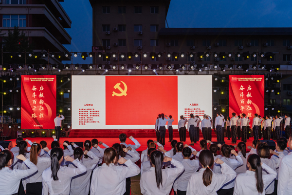 最后,黨委組織部部長(zhǎng)劉繼東擔(dān)任領(lǐng)誓人,150名新黨員進(jìn)行入黨宣誓,全體參會(huì)黨員集體重溫入黨誓詞。