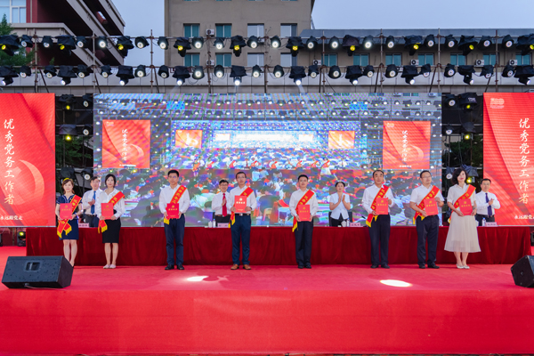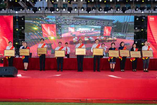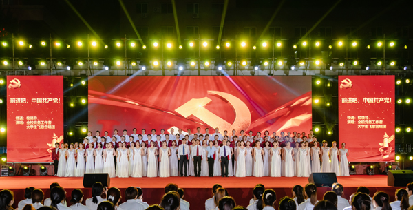 奮斗百年路,啟航新征程。6月29日晚上,學(xué)校隆重舉行2019~2021年度“兩先兩優(yōu)”表彰大會(huì)暨慶祝中國(guó)共產(chǎn)黨成立100周年大型文藝演出。學(xué)校領(lǐng)導(dǎo)、老黨員老干部代表、“光榮在黨50年”紀(jì)念章獲得者代表、學(xué)?!皟上葍蓛?yōu)”獲獎(jiǎng)代表、師生代表等參會(huì)。