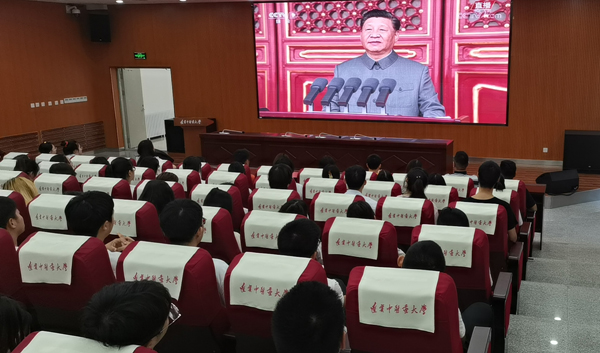 學(xué)校黨委書(shū)記石巖、校長(zhǎng)呂曉東、副校長(zhǎng)關(guān)雪峰、紀(jì)委書(shū)記張洪新,中層干部,廣大師生2365人,在沈陽(yáng)、大連、本溪三個(gè)校區(qū)的28個(gè)分會(huì)場(chǎng),心潮澎湃,豪情滿(mǎn)懷地收看了慶祝中國(guó)共產(chǎn)黨成立100周年大會(huì)直播,共同見(jiàn)證激動(dòng)人心的歷史時(shí)刻,認(rèn)真聆聽(tīng)習(xí)近平總書(shū)記的重要講話。