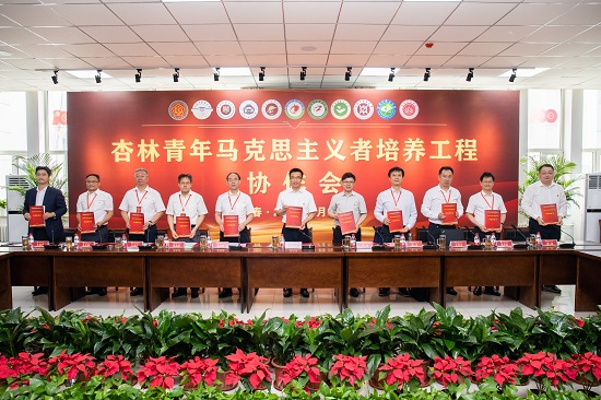 簽約儀式上,我校黨委書記石巖與山東中醫(yī)藥大學(xué)黨委書記武志彪、陜西中醫(yī)藥大學(xué)黨委書記劉力、山西中醫(yī)藥大學(xué)黨委書記段志光、云南中醫(yī)藥大學(xué)黨委書記王翠崗、長(zhǎng)春中醫(yī)藥大學(xué)黨委書記張興海等6位高校黨委書記共同為“杏林青年馬克思主義者培養(yǎng)工程”協(xié)作會(huì)揭牌?!靶恿智嗄犟R克思主義者培養(yǎng)工程”協(xié)作會(huì)正式宣告成立?!靶恿智嗄犟R克思主義者培養(yǎng)工程”協(xié)作會(huì)的成立,搭建起全國(guó)中醫(yī)藥大學(xué)青年馬克思主義者培養(yǎng)交流平臺(tái),協(xié)作會(huì)成立后將定期開展研討、交流活動(dòng),致力于推進(jìn)青年馬克思主義者培養(yǎng)工程的創(chuàng)新發(fā)展。