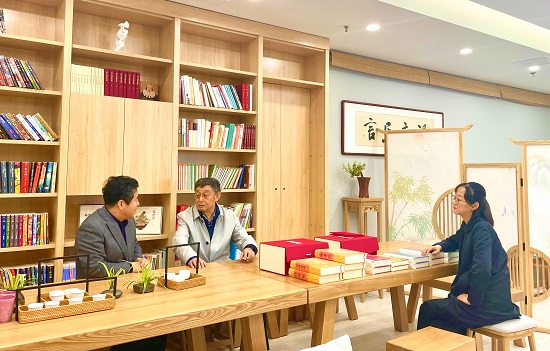 馬驥教授在圖書(shū)館二樓經(jīng)典書(shū)房與部分圖書(shū)館員進(jìn)行了座談交流,對(duì)圖書(shū)館的建設(shè)、發(fā)展、服務(wù)以及青年人的學(xué)習(xí)、成長(zhǎng)提出了勉勵(lì)與期望。