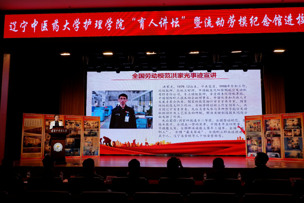 在簽約儀式之前,護(hù)理學(xué)院開展了以“勞模引領(lǐng)成長 勞動(dòng)筑夢青春”為主題的“育人講壇”暨流動(dòng)勞模紀(jì)念館進(jìn)校園活動(dòng)。