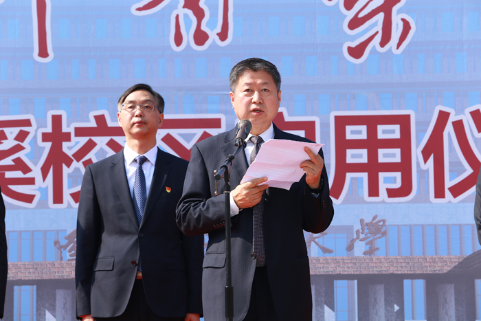 儀式上,本溪市副市長(zhǎng)高巍發(fā)表講話,他代表本溪市委、市政府,向遼寧中醫(yī)藥大學(xué)新校區(qū)入駐本溪并正式啟用,表示誠(chéng)摯的歡迎和熱烈的祝賀。他指出,占地47.18公頃的遼寧中醫(yī)藥大學(xué)本溪校區(qū)一定能勵(lì)精圖治,鴻業(yè)大展,成為聞名國(guó)內(nèi)外、特色鮮明的一流校區(qū)。本溪市委、市政府將大力支持遼寧中醫(yī)藥大學(xué)本溪校區(qū)工作,為廣大師生和科研人員,創(chuàng)造良好的工作、教學(xué)和生活條件,提供更好的服務(wù)保障。希望遼寧中醫(yī)藥大學(xué)把大學(xué)的科研優(yōu)勢(shì)、人才優(yōu)勢(shì),轉(zhuǎn)化為本溪的產(chǎn)業(yè)優(yōu)勢(shì)、發(fā)展優(yōu)勢(shì),助力本溪提升生物醫(yī)藥及健康產(chǎn)業(yè)的核心競(jìng)爭(zhēng)力,為本溪高質(zhì)量發(fā)展提供更多的智力支持。