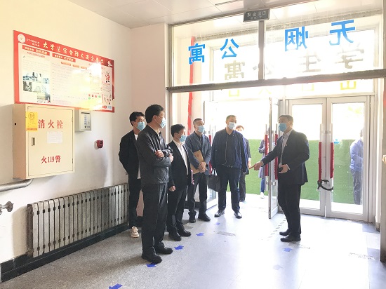 曾慶捷首先代表學校致辭,對督察組的到來表示熱烈的歡迎和衷心感謝,面對即將返校復(fù)學的重要節(jié)點,教育廳組織督察組對我校疫情防控工作和返校復(fù)學準備工作給予指導和檢查,非常必要和及時。要求全校各部門積極配合,認真接受檢查,嚴格按照《遼寧省高校返校復(fù)學疫情防控措施40條》文件指示精神,對存在的問題要立行立改,層層壓實責任,確保我校的返校復(fù)學工作在教育廳的全面指導下安全有序開展。學校疫情防控工作領(lǐng)導小組辦公室主任張文順代表學校從疫情防控工作開展情況、學生返校復(fù)學工作準備情況和貫徹落實《遼寧省高校返校復(fù)學疫情防控措施40條》文件指示精神情況向督察組進行了工作匯報。督察組組長大連交通大學黨委常委、副校長趙文春代表督察組講話,在充分肯定了學校疫情防控和返校復(fù)學準備工作的同時,就“返校批次安排”、“防控體系搭建”、“隔離場所設(shè)置”以及“學生畢業(yè)安排”等具體問題進行了詢問,遼寧省教育廳服務(wù)業(yè)高等教育處二級調(diào)研員徐連明就學校落實《遼寧省高校返校復(fù)學疫情防控措施40條》相關(guān)內(nèi)容情況進行了詳細提問,相關(guān)處室負責人對督察組提出的各項問題進行了匯報。 匯報結(jié)束后,督察組在學校相關(guān)處室負責人的陪同下進行了實地查看,重點對學校入校測溫通道、學生公寓以及臨時隔離觀察室等疫情防控關(guān)鍵點位進行了實地檢查,并給予意見反饋。