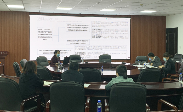 為推動我校新型冠狀病毒肺炎應(yīng)急攻關(guān)項(xiàng)目《新型冠狀病毒肺炎中醫(yī)藥方案的驗(yàn)證、應(yīng)用和推廣研究》的科研進(jìn)展,5月8日下午,學(xué)校組織項(xiàng)目分任務(wù)負(fù)責(zé)人、課題骨干、科研管理人員、財(cái)務(wù)處負(fù)責(zé)人等召開了《新型冠狀病毒肺炎中醫(yī)藥方案的驗(yàn)證、應(yīng)用和推廣研究》應(yīng)急攻關(guān)項(xiàng)目季度進(jìn)展匯報會。會議由科技處處長于睿主持,學(xué)校校長石巖出席本次會議,就當(dāng)前科研成果及下一步科研工作聽取匯報。