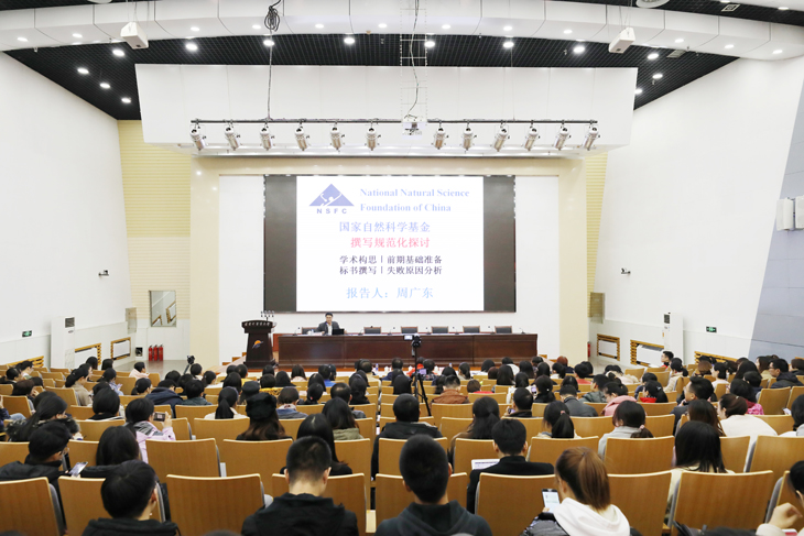 本期講座的主講人為周廣東,他從國(guó)自然項(xiàng)目申請(qǐng)學(xué)術(shù)構(gòu)思角度進(jìn)行講解,內(nèi)容包括如何選題、如何設(shè)計(jì)、準(zhǔn)備核心預(yù)實(shí)驗(yàn)、如何凝煉科學(xué)問(wèn)題與假說(shuō)等;并以實(shí)際范本逐條講解申請(qǐng)書寫作原則、注意事項(xiàng)、寫作技巧;詳細(xì)講解從標(biāo)書初稿完成后如何查缺補(bǔ)漏、如何規(guī)避可能的失敗原因;對(duì)幾位老師的申請(qǐng)書進(jìn)行了現(xiàn)場(chǎng)指導(dǎo)。本次講座內(nèi)容豐富,廣大師生深受啟發(fā)。