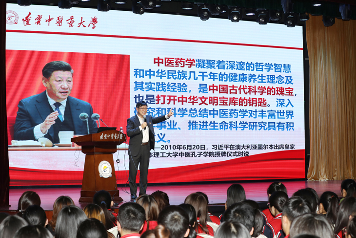 10月17日,在學(xué)校大學(xué)生活動中心,學(xué)校黨委副書記,校長石巖教授,為2019級新生作題為“愛上中醫(yī),讓愛傳遞”主題報告,為全體新生在正式開啟大學(xué)學(xué)習(xí)生涯之際,上好大學(xué)第一課。學(xué)校各學(xué)院2019級新生代表、輔導(dǎo)員、各部門領(lǐng)導(dǎo)等900余人參會。