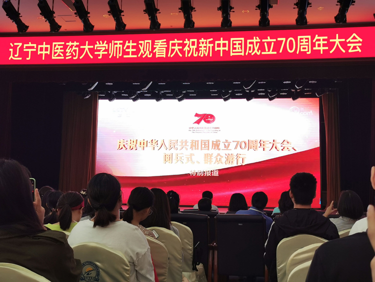 金秋十月、三軍列陣、鐵甲生輝!在中華人民共和國成立70周年的神圣時刻,10月1日,慶祝中華人民共和國成立70周年大會在莊嚴(yán)的北京天安門廣場隆重舉行,英雄的中國軍隊在這里集結(jié),自豪的中國人民在這里歡聚。中共中央總書記、國家主席、中央軍委主席習(xí)近平在大會發(fā)表重要講話。遼寧中醫(yī)藥大學(xué)組織留校師生近千人共同在大學(xué)生活動中心觀看慶典大會盛況。學(xué)校領(lǐng)導(dǎo)班子、部分中層干部一同與學(xué)生們滿懷喜悅和豪情,共同聆聽、記錄、收看了直播盛況,共慶中華人民共和國華誕,共享偉大祖國榮光。