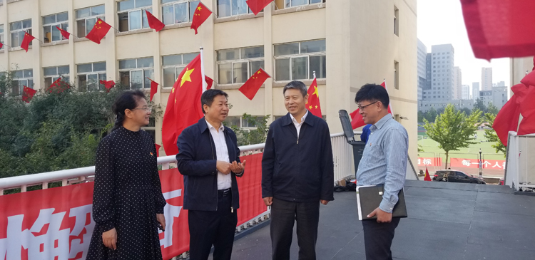馮守權(quán)考察了我校慶祝新中國成立70周年校園文化建設(shè)情況,實(shí)地觀看了教學(xué)樓、寢室樓等建筑物窗外懸掛國旗情況。