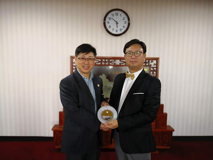 校長石巖教授會見了代表團(tuán)。石巖首先對遠(yuǎn)道而來的客人表示歡迎,并向來賓介紹了我校近階段取得的成果和收獲。金瀚奎對石巖的熱情接待表示感謝。雙方均希望未來在學(xué)生培養(yǎng)、科研合作、校際交流等方面進(jìn)一步加強(qiáng)合作。