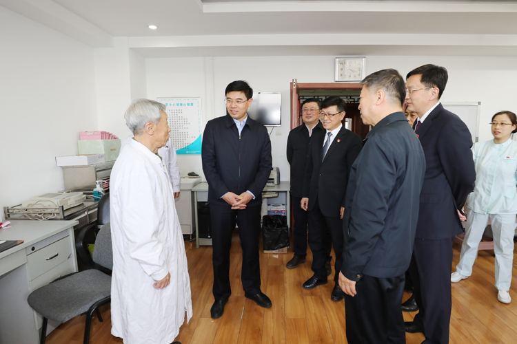 3月11日下午,副省長李金科一行來我??疾煺{(diào)研。李金科一行首先來到學(xué)校附屬醫(yī)院康復(fù)中心,參觀了藥浴中心、傳統(tǒng)療法中心、現(xiàn)代療法中心、眼針學(xué)術(shù)流派工作室及張靜生名醫(yī)工作室,詳細(xì)了解了中醫(yī)治病、康復(fù)、養(yǎng)生等情況。
