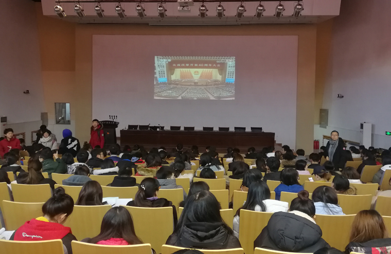 12月18日上午10時(shí),慶祝改革開放40周年大會(huì)在人民大會(huì)堂舉行。中共中央總書記、國(guó)家主席、中央軍委主席習(xí)近平出席大會(huì)并發(fā)表了重要講話。學(xué)校師生以部門或者以支部為單位,分別在20余個(gè)會(huì)場(chǎng)認(rèn)真觀看了大會(huì)直播。