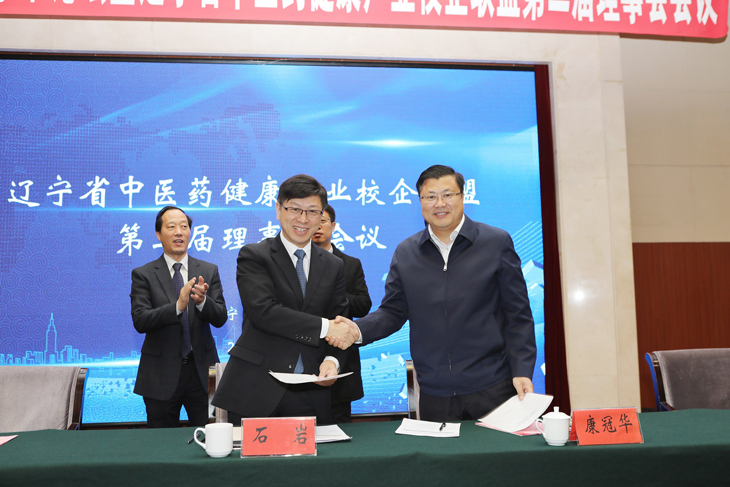 大會(huì)分為兩部分,上午為遼寧省中醫(yī)藥健康產(chǎn)業(yè)校企聯(lián)盟第二屆理事會(huì)會(huì)議。會(huì)上,關(guān)雪峰匯報(bào)了遼寧省中醫(yī)藥健康產(chǎn)業(yè)校企聯(lián)盟成立以來的工作情況以及2019年的重點(diǎn)工作計(jì)劃。遼寧和潤德健康管理有限公司等3個(gè)新增聯(lián)盟成員單位分別作了代表性發(fā)言。到會(huì)的聯(lián)盟成員單位審議并表決通過聯(lián)盟理事會(huì)成員建議名單,提名并表決通過聯(lián)盟理事會(huì)理事長、副理事長人選,聯(lián)盟理事會(huì)理事長任命了聯(lián)盟理事會(huì)秘書長、副秘書長,聯(lián)盟理事會(huì)成員審議了遼寧省中醫(yī)藥健康產(chǎn)業(yè)校企聯(lián)盟第一屆專家委員會(huì)建議名單。依托聯(lián)盟,學(xué)校與西豐縣人民政府簽訂了共建鹿產(chǎn)業(yè)技術(shù)研究院協(xié)議,與江陰天江藥業(yè)有限公司等4家企業(yè)簽訂了校企共建項(xiàng)目協(xié)議,與大連斯威中醫(yī)藥研發(fā)中心、遼寧佰福藥業(yè)有限公司簽訂了技術(shù)服務(wù)協(xié)議。