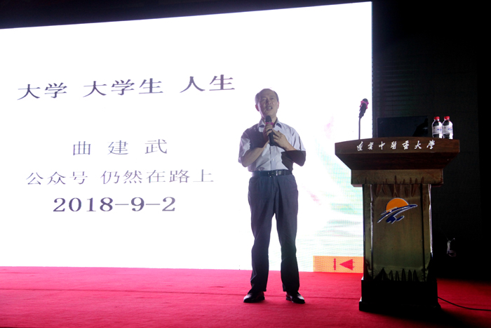 (曲建武教授為新生作題為“大學(xué)·大學(xué)生·人生”報(bào)告)