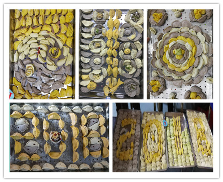 活動(dòng)中,主持人在臺(tái)上幽默詼諧、妙語連珠;參與活動(dòng)的選手在臺(tái)下熱情高漲、緊張忙碌;觀眾在場外歡聲笑語、互動(dòng)助威。在創(chuàng)意展示環(huán)節(jié),各參賽隊(duì)分別以“迎元旦”“迎校慶”為主題將不同顏色的餃子拼成造型各異、創(chuàng)意獨(dú)特、富有內(nèi)涵的圖案,飽含著對學(xué)校的美好祝福和衷心祝愿。經(jīng)過大眾評委認(rèn)真評選,分別評出最佳造型獎(jiǎng)、最佳團(tuán)隊(duì)獎(jiǎng)和最佳創(chuàng)意獎(jiǎng)。