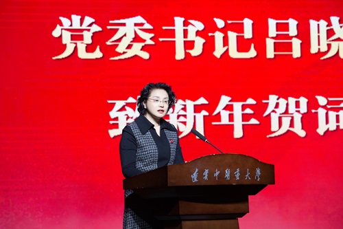 呂曉東代表學(xué)校黨委致新年賀詞,向全校教職員工、青年學(xué)生、離退休老同志、海內(nèi)外校友致以新年的問候和誠摯的祝福,向長期關(guān)心支持學(xué)校發(fā)展的社會各界朋友致以衷心的感謝和美好的祝愿。