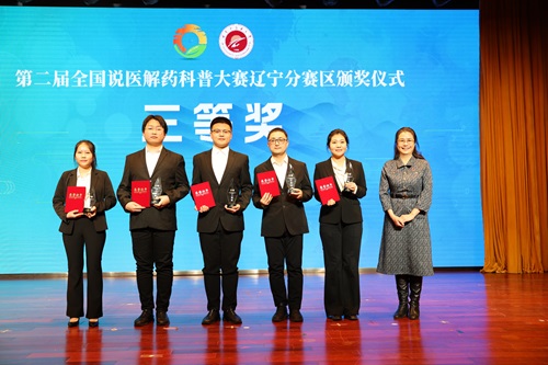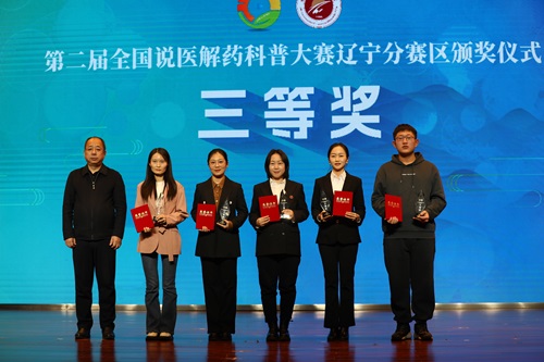 1月19日,第二屆全國說醫(yī)解藥科普大賽遼寧分賽區(qū)頒獎儀式在遼寧中醫(yī)藥大學隆重舉行。中國中醫(yī)藥科技發(fā)展中心(國家中醫(yī)藥管理局人才交流中心)副主任范勁松,遼寧省中醫(yī)藥管理局中醫(yī)藥健康服務處處長劉嶸,沈陽廣播電視臺FM98.6遼寧音樂廣播總監(jiān)楊曼,遼寧中醫(yī)藥大學黨委書記呂曉東、黨委副書記劉繼東、紀委書記張錦徽、副校長戴旭、副校長任路及分賽區(qū)評審專家代表、學校正處級領導干部,各學院副書記、專職輔導員,各學院及四所附屬醫(yī)院教職工代表、學生代表,獲獎選手400余人出席頒獎儀式。頒獎儀式由遼寧中醫(yī)藥大學美育老師金秋和沈陽廣播電視臺FM98.6《沈陽早高峰》節(jié)目主持人一帆共同主持。