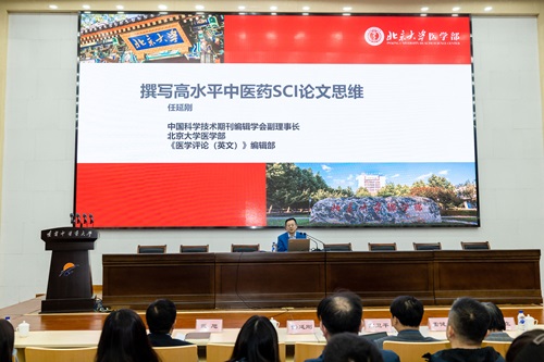 三位教授分別以《撰寫高水平中醫(yī)藥SCI論文寫作思維》《創(chuàng)新蛋白質(zhì)藥物的設(shè)計合成》《如何撰寫一篇好的SCI科研文章淺談》為主旨報告,與我校師生進行分享。任延剛教授圍繞如何提高高水平中醫(yī)藥SCI論文的寫作思維,分別介紹了中醫(yī)藥SCI論文的寫作特點、國際發(fā)展趨勢和中醫(yī)藥SCI論文的發(fā)表類型等,指出撰寫高水平中醫(yī)藥論文應(yīng)該遵循SCI的規(guī)則。高衛(wèi)平教授提出了蛋白質(zhì)藥物面臨的問題與挑戰(zhàn),并以問題為導(dǎo)向,提出了蛋白質(zhì)-高分子精準偶聯(lián)及智能化的關(guān)鍵問題和進一步的研究思路,其創(chuàng)新研究成果廣泛轉(zhuǎn)化應(yīng)用于腫瘤等重大疾病的診療方面。雷健波教授以優(yōu)質(zhì)、高分的SCI論文為例,詳盡地梳理了撰寫一篇完整的高水平論文的結(jié)構(gòu)框架和各部分可能出現(xiàn)的細節(jié)問題,并指出一篇好文章應(yīng)該明確選題的重要性,充分展現(xiàn)文章價值。