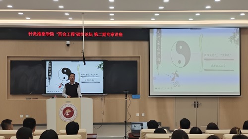 11月17日,針灸推拿學(xué)院“百會工程·碩博論壇”第二期專家講座在針灸推拿學(xué)院Z501階梯教室舉辦,同時以騰訊會議的形式進(jìn)行線上直播。講座由針灸推拿學(xué)院院長董寶強(qiáng)主持。董寶強(qiáng)強(qiáng)調(diào)廣大學(xué)子要“厚基礎(chǔ)、重臨床、敢創(chuàng)新”,保持勤勉態(tài)度,通過“百會工程”碩博論壇這一平臺,提升自身行業(yè)素養(yǎng),夯實(shí)專業(yè)基礎(chǔ),拓寬學(xué)術(shù)視野。