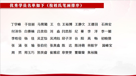 隨后,優(yōu)秀學(xué)員代表林航宇、楊佳和付澤華結(jié)合自身經(jīng)歷分享了參與青馬理論學(xué)苑的巨大收獲,大家紛紛表示青馬理論學(xué)苑是一個(gè)有深度、有溫度、積極向上、思想先進(jìn)的一個(gè)大家庭,結(jié)業(yè)在即,內(nèi)心萬(wàn)分不舍,但“縱有四海,橫有八荒,前途似錦,來(lái)日方長(zhǎng)?!眲⒛壤蠋煷砣w班主任發(fā)言,她表示本次結(jié)業(yè)儀式采用線上的形式開(kāi)展,結(jié)業(yè)之后,希望全體學(xué)員離線但不離場(chǎng)。首先,馬克思主義不離場(chǎng),同學(xué)們要學(xué)會(huì)用科學(xué)的理論和批判的武器思考問(wèn)題;其次,青馬學(xué)員的身份和責(zé)任擔(dān)當(dāng)不離場(chǎng),既然選擇了天使白就要肩負(fù)起自己的使命和擔(dān)當(dāng)!正如習(xí)近平總書(shū)記在中國(guó)人民大學(xué)調(diào)研考察時(shí)寄語(yǔ)青年:“我們要在青春的賽道上奮力奔跑,爭(zhēng)取跑出當(dāng)代青年的最好成績(jī)?!?/p>