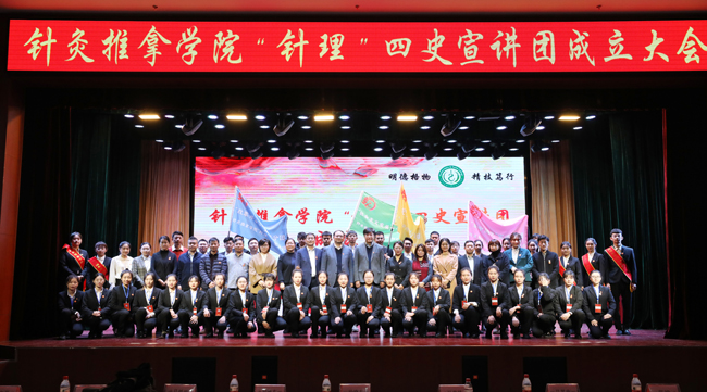最后,劉繼東對針灸推拿學(xué)院“針理”四史宣講團(tuán)的成立表示熱烈祝賀,他指出,宣講團(tuán)的成立開創(chuàng)了學(xué)校學(xué)習(xí)“四史”教育創(chuàng)新模式的先河,并希望宣講團(tuán)能夠?qū)ⅰ八氖贰睂W(xué)習(xí)講出重點、講出亮點,發(fā)揮出強大的輻射力,對“四史”學(xué)習(xí)教育起到有力的推動作用。