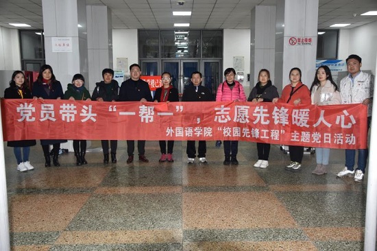 為更深入開展“校園先鋒工程”,學院黨總支于2020年11月18日組織開展“黨員帶頭‘一幫一’,志愿先鋒暖人心”主題黨日活動,旨在通過發(fā)揮教師黨員先鋒模范帶頭作用,進一步加強黨員教師在學生思想上的引領,在學習上的指導,在生活上的幫助,促進新時代大學生身心健康全面發(fā)展。