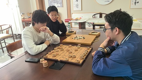 棋室里,圍棋與象棋實踐工作坊的學(xué)生們首先學(xué)習(xí)了“中炮開局”“屏風(fēng)馬”等象棋的布陣技巧,“順炮”“列炮”等常見棋局的應(yīng)對方法,同學(xué)們認真鉆研、熱烈討論,隨后進行分組切磋、大展棋技。