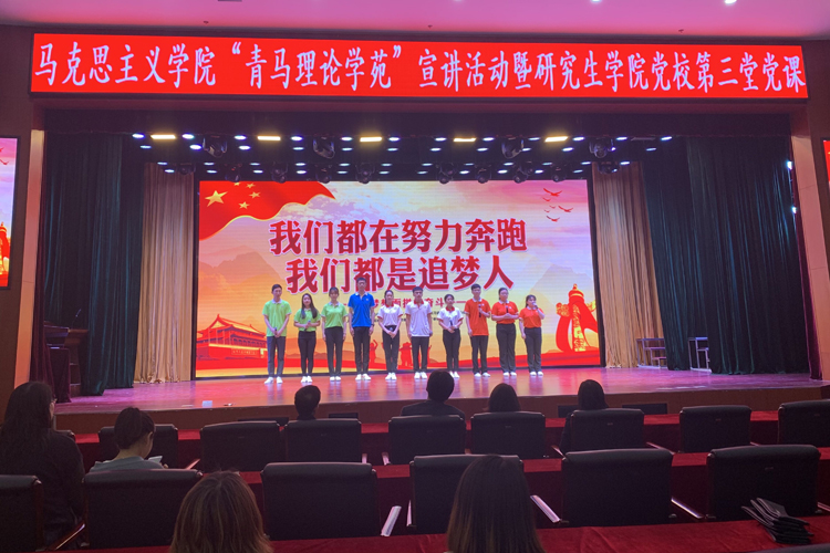 5月20日,為創(chuàng)新黨課形式,有效增強黨員教育的鮮活度,研究生學(xué)院黨校邀請馬克思主義學(xué)院“青馬理論學(xué)苑”宣講團開展第三期黨課,馬克思主義學(xué)院黨總支書記馬其南、副院長陳吉慶、研究生學(xué)院黨總支書記王飛、黨總支副書記張丹,以及馬克思主義學(xué)院全體教師,研究生學(xué)院教工黨員、黨校全體學(xué)員參加黨課。