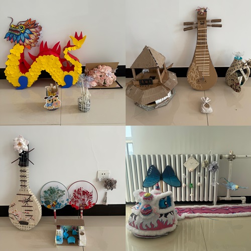 經(jīng)過兩周的精心準(zhǔn)備,同學(xué)們興高采烈地將各自的心血之作帶到展示現(xiàn)場:手繪國風(fēng)扇子、手工琵琶,散發(fā)著濃厚的傳統(tǒng)文化氣息;用舊紙殼和塑料袋巧妙搭建的太白亭、舞獅,展現(xiàn)著無窮創(chuàng)意與巧思;用面巾紙、塑料瓶編織而成的玫瑰花和風(fēng)鈴,彰顯著同學(xué)們的匠心獨(dú)運(yùn)與創(chuàng)意無限。最終評選出一等獎(jiǎng)3名,二等獎(jiǎng)7名,三等獎(jiǎng)10名。