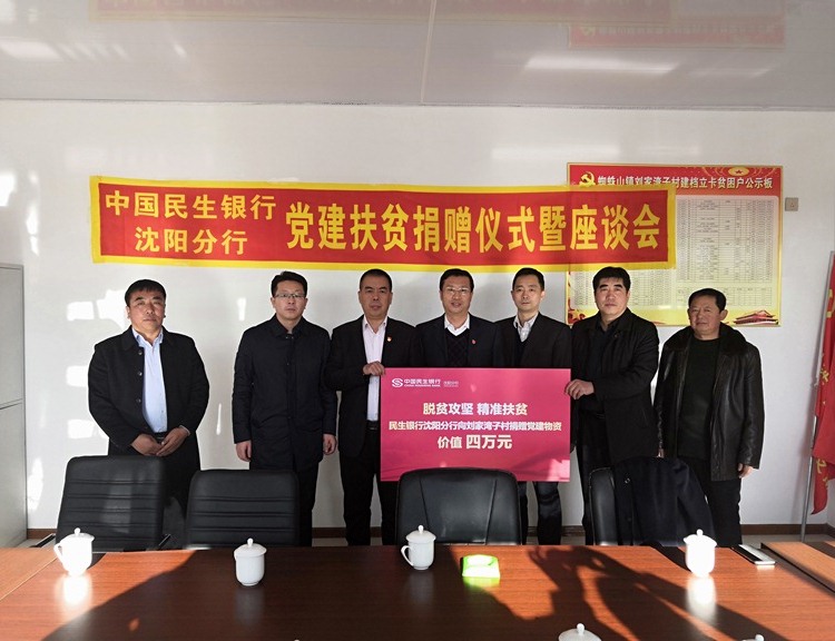 為不斷加強(qiáng)貧困地區(qū)基層黨組織建設(shè),持續(xù)夯實(shí)貧困地區(qū)黨建工作基礎(chǔ)。去年11月開始,學(xué)校駐村干部赫軍經(jīng)過多次與遼寧省扶貧辦溝通,已與中國民生銀行沈陽分行黨委達(dá)成幫扶意向。今年1月13日,在阜蒙縣蜘蛛山鎮(zhèn)劉家灣子村的黨群活動(dòng)中心,舉行了中國民生銀行沈陽分行“黨建扶貧捐贈(zèng)儀式”,儀式上,民生銀行沈陽分行捐贈(zèng)價(jià)值四萬元的辦公用品、書籍等物資,專項(xiàng)用于新建成的黨群服務(wù)中心中基礎(chǔ)建設(shè)。蜘蛛山鎮(zhèn)鎮(zhèn)長楊寧、蜘蛛山鎮(zhèn)黨委副書記趙虹橋、劉家灣子村第一書記赫軍、民生銀行沈陽分行行長兼黨委副書記(主持工作)程清亮、副行長戴長春、黨委組織部負(fù)責(zé)人周櫓、以及蜘蛛山鎮(zhèn)黨委相關(guān)領(lǐng)導(dǎo)參加了捐贈(zèng)活動(dòng)。